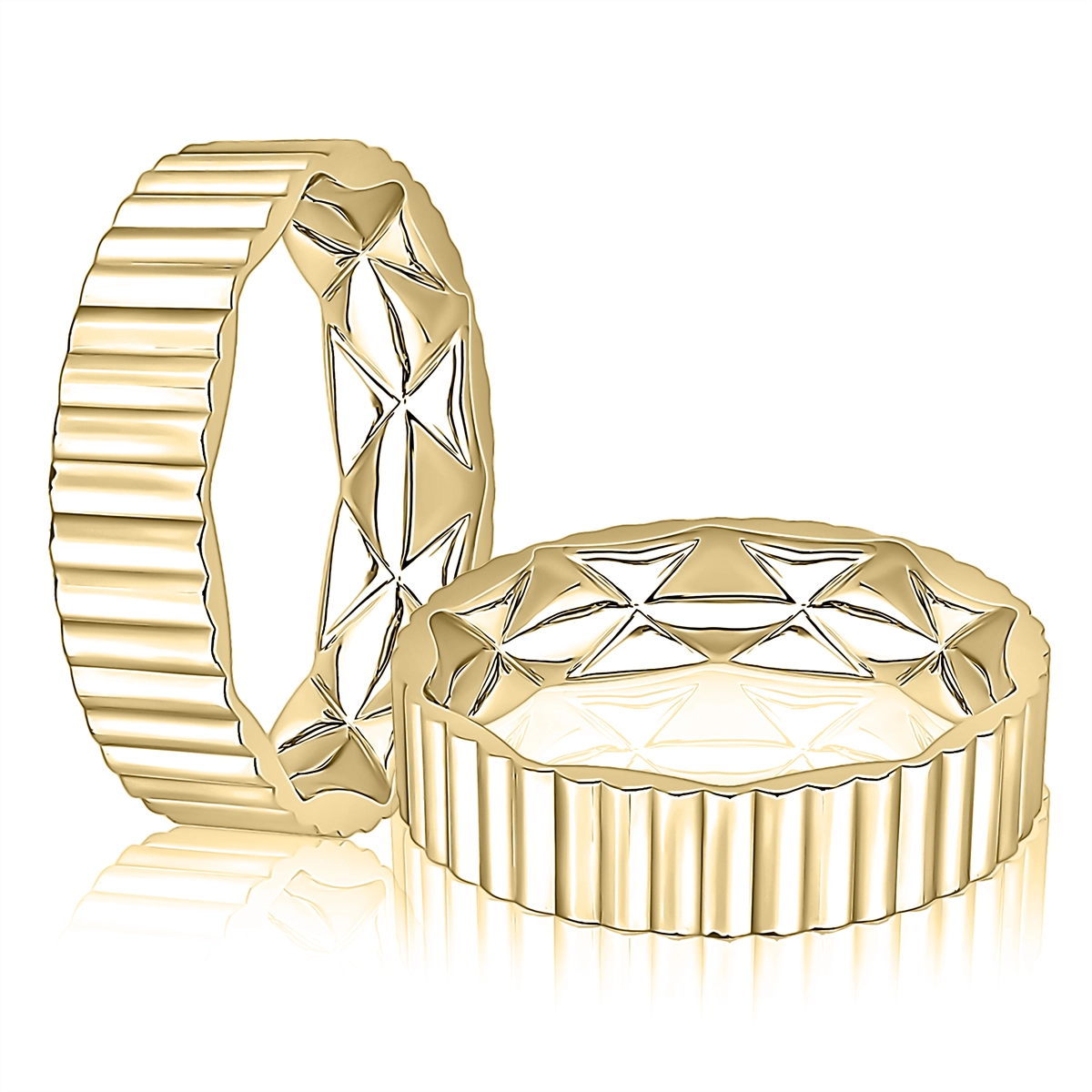 Ladies band in 14 karat yellow gold. Accordian designed band with inside quilt. *Not sizable