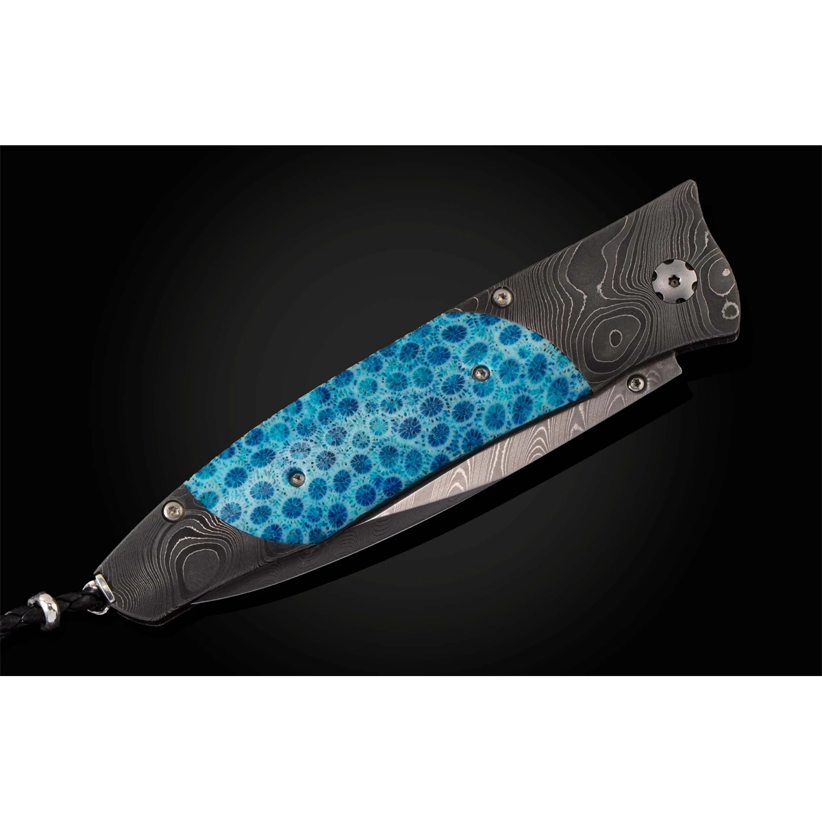 William Henry Blue Spark Pocket Knife with Fossil Coral