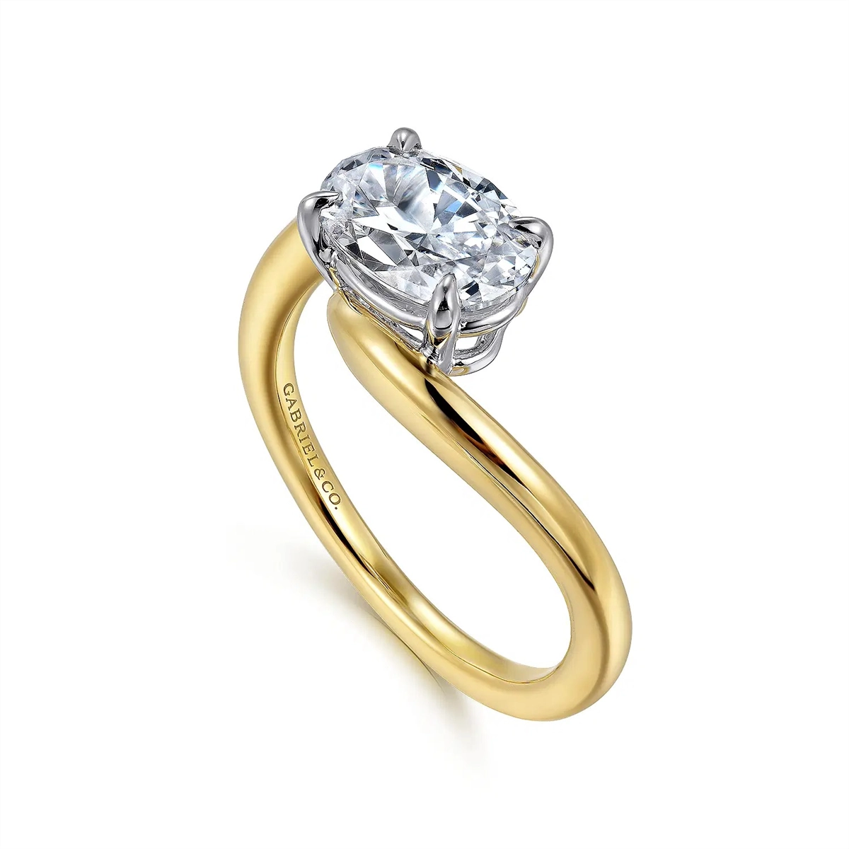 14K Yellow and White Gold Solitaire Ring with Oval set East/West