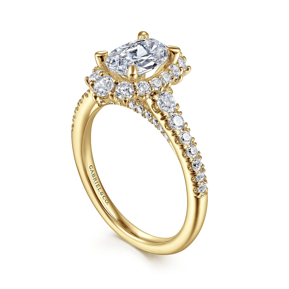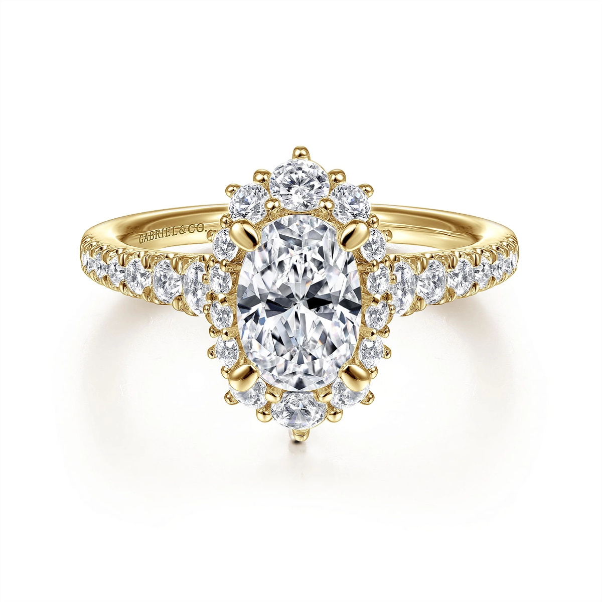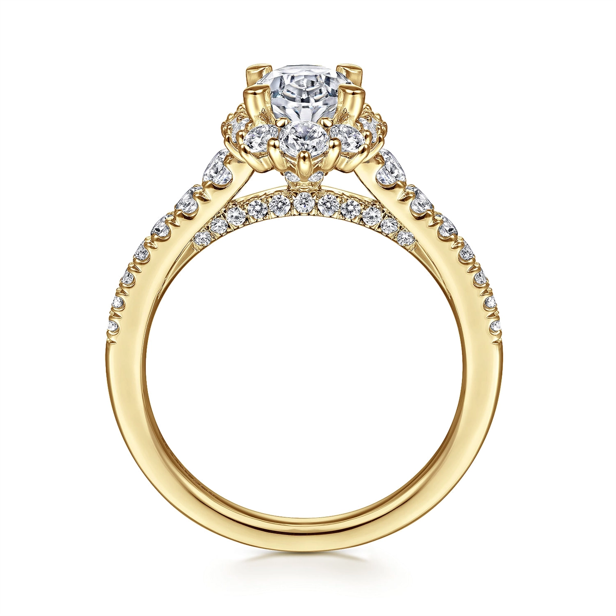 14K Yellow Gold Diamond Semi-mount Ring with Oval Halo
