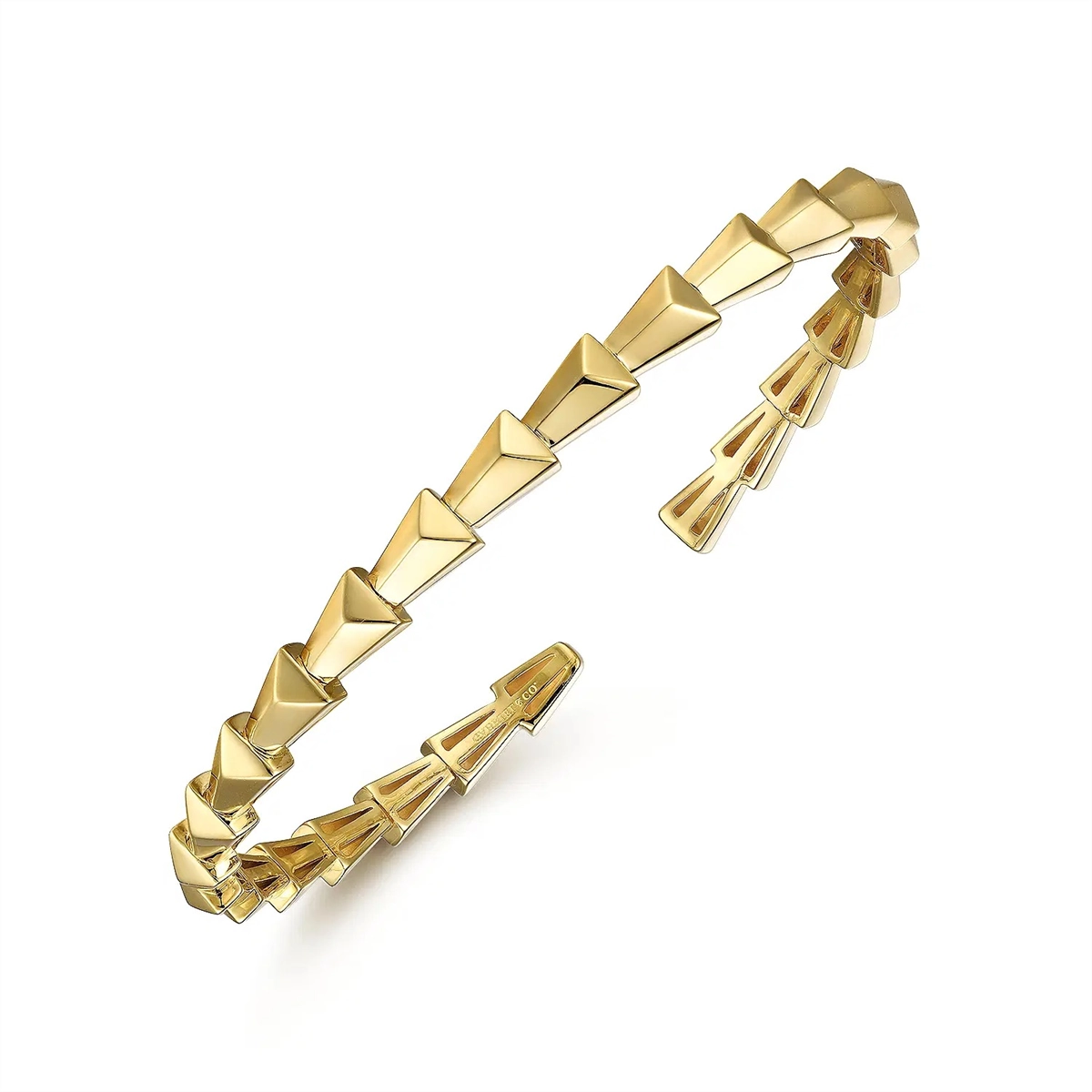 14K Yellow Gold Geometric Open Bangle Bracelet