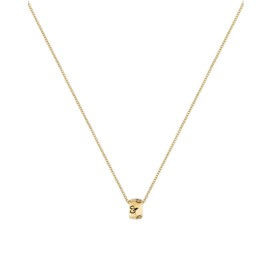Ladies Gucci necklace. 18 karat yellow gold. Icon pendant necklace, 16-18 inch length.