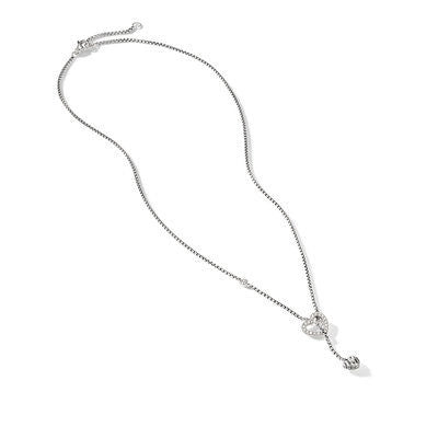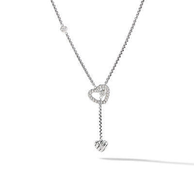 Ladies David Yurman necklace. Sterling silver. Cable heart Y necklace with diamonds, diamond total weight of 0.28 carat.