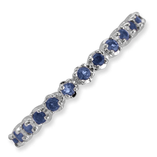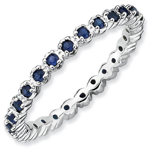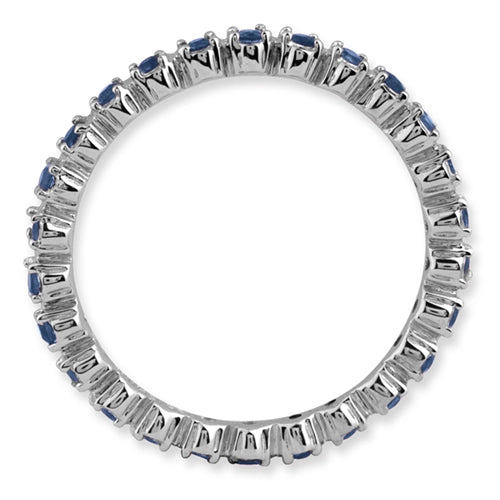 Ladies sterling silver stackable eternity band in Created Sapphire. Size 6
