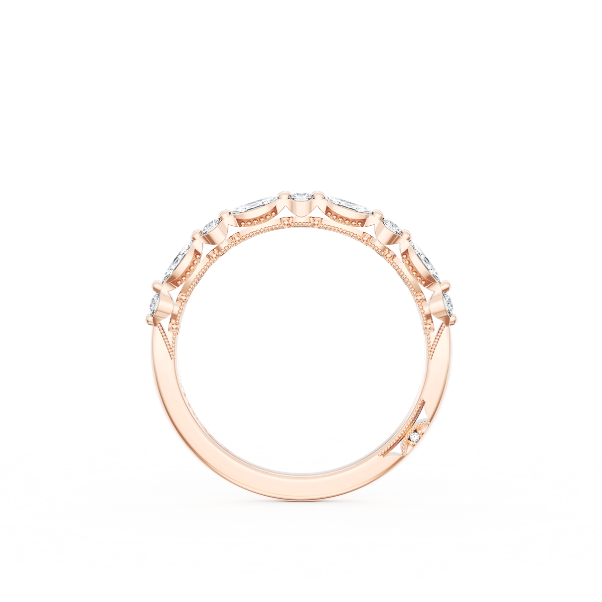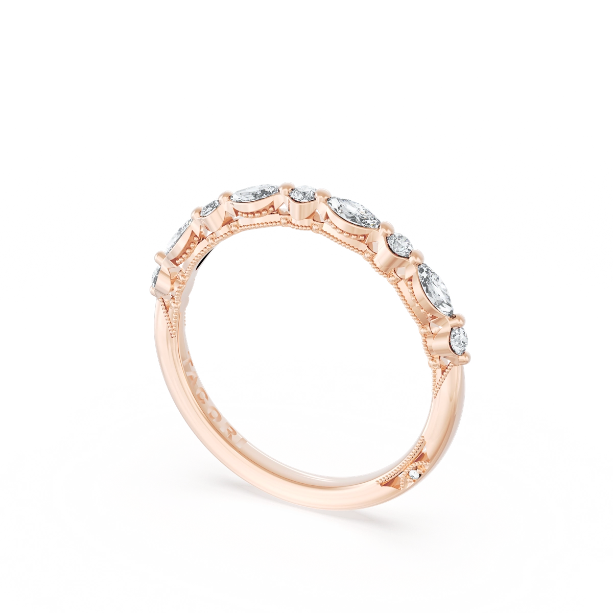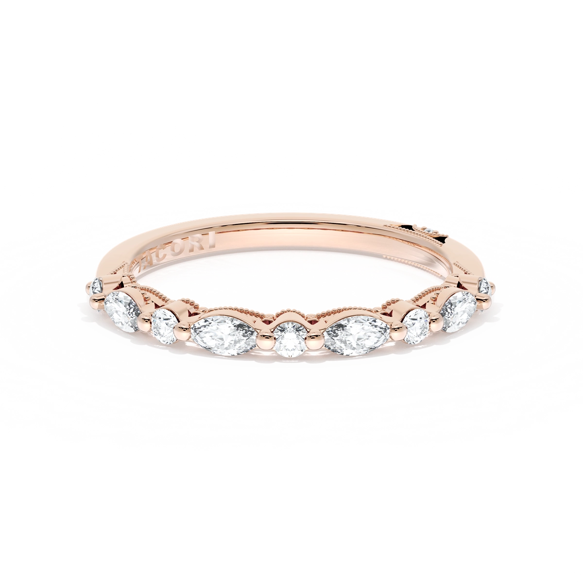 Ladies Tacori diamond band in 18 karat rose gold. Set in the band are four marquise cut diamonds and seven round brilliant cut diamonds with a total weight of 0.37 carat.