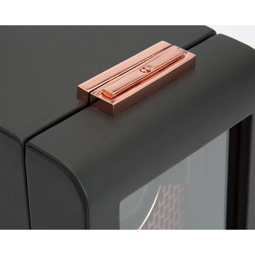 Wolf Axis Single Watch Winder. Copper. Rotation options: 10 second start delay. Can be set between 300 and 1,200 TPD (turns per day). Double the amount of TPD by selecting bi-directional setting. Directional settings: Clockwise, counter clockwise and bi-directional. Battery: Option to run on AC power (universal adapter included) or D-Cell/Lithium batteries (not included).
