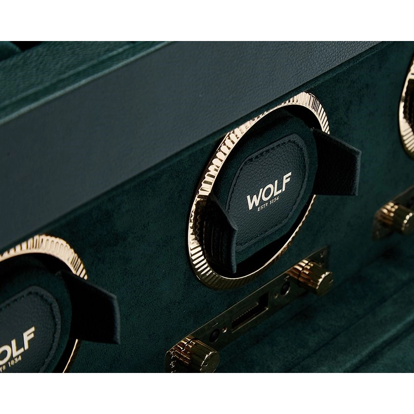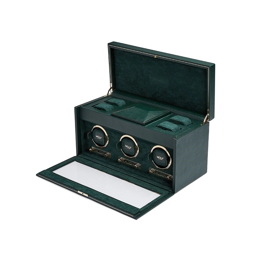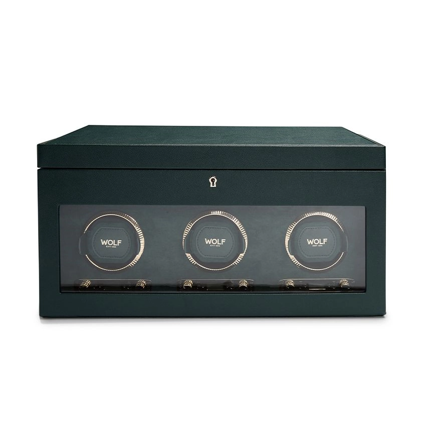 Wolf British Racing Triple Watch Winder with Storage - Green