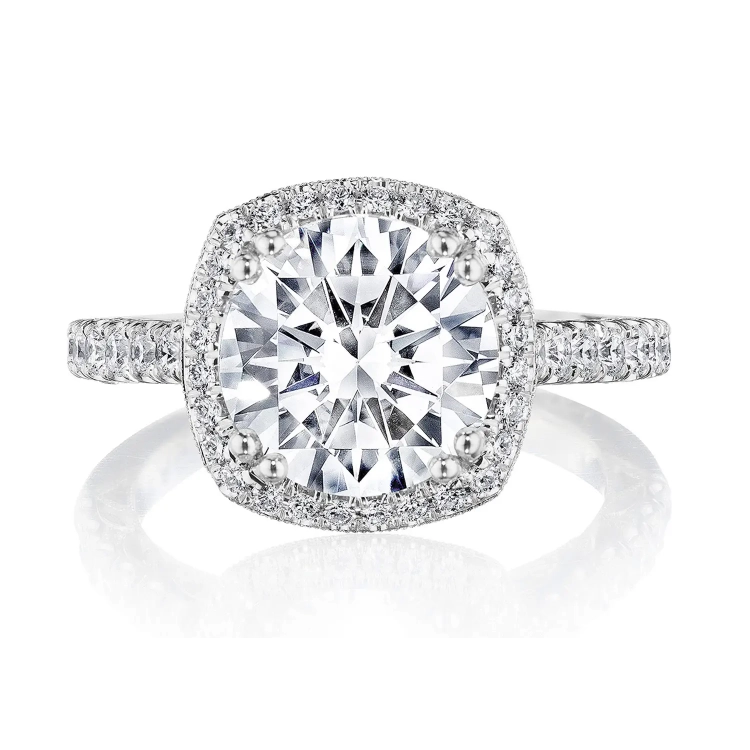 Tacori 18K White Gold Dantela Cushion Bloom Semi Mount Diamond Ring