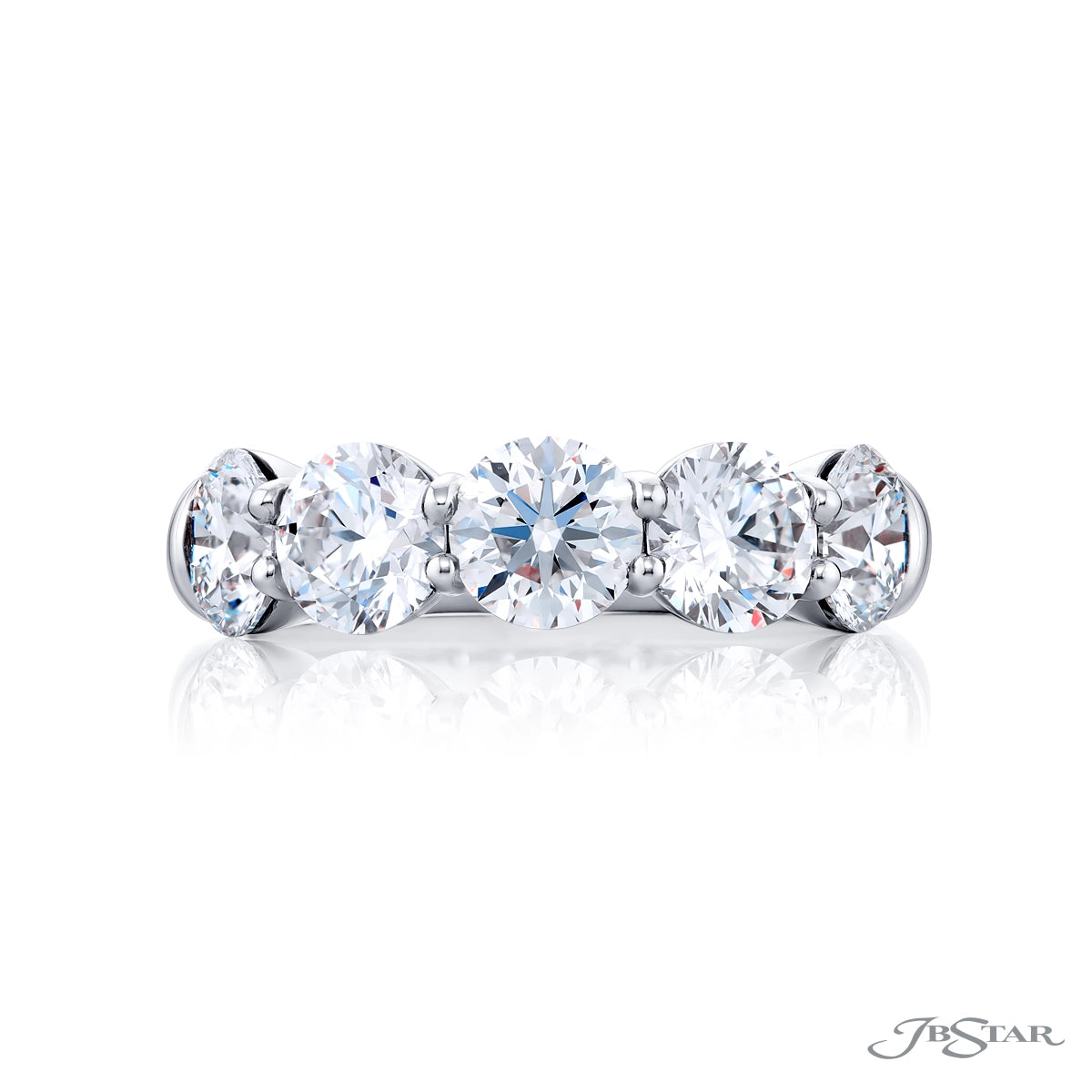 Ladies diamond band in platinum. Set in the band are five round brilliant cut diamonds with a total weight of 4.50 carat. The diamonds average VS in clarity and DE in color. GIA