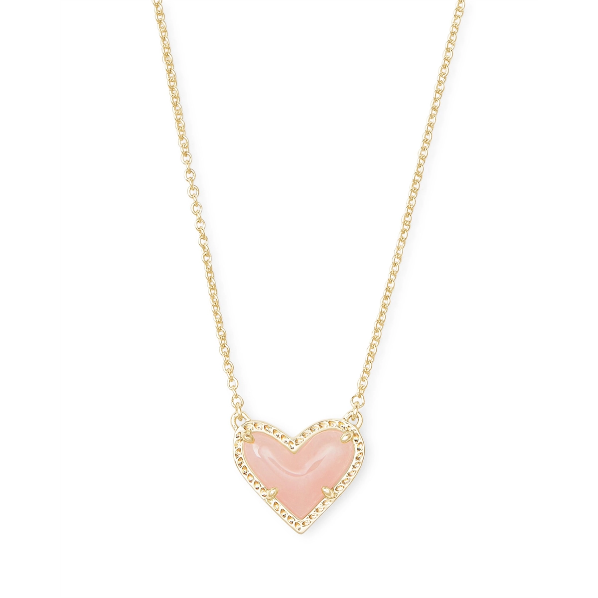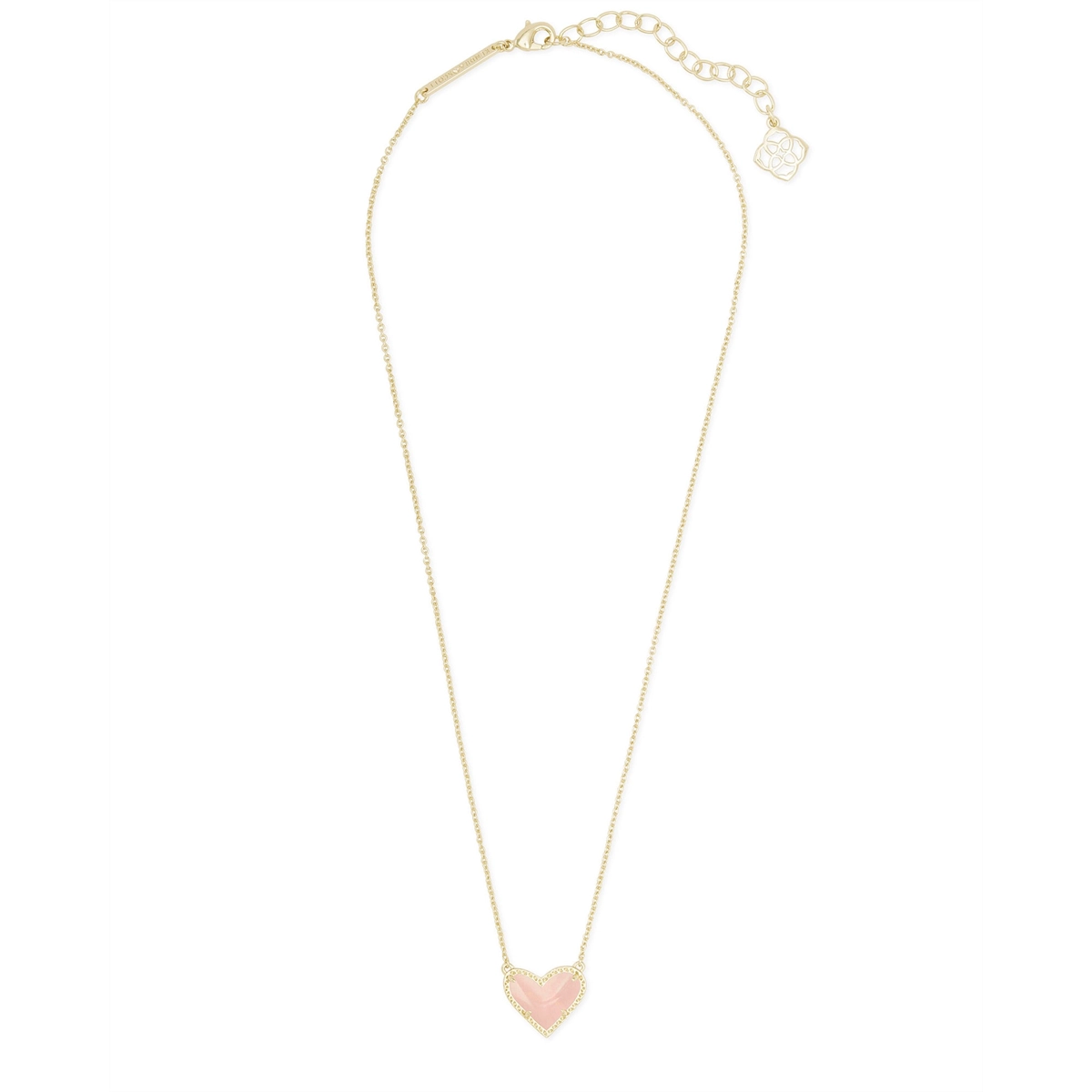 Kendra Scott Ari Heart Short Pendant Necklace in Gold with Rose Quartz
