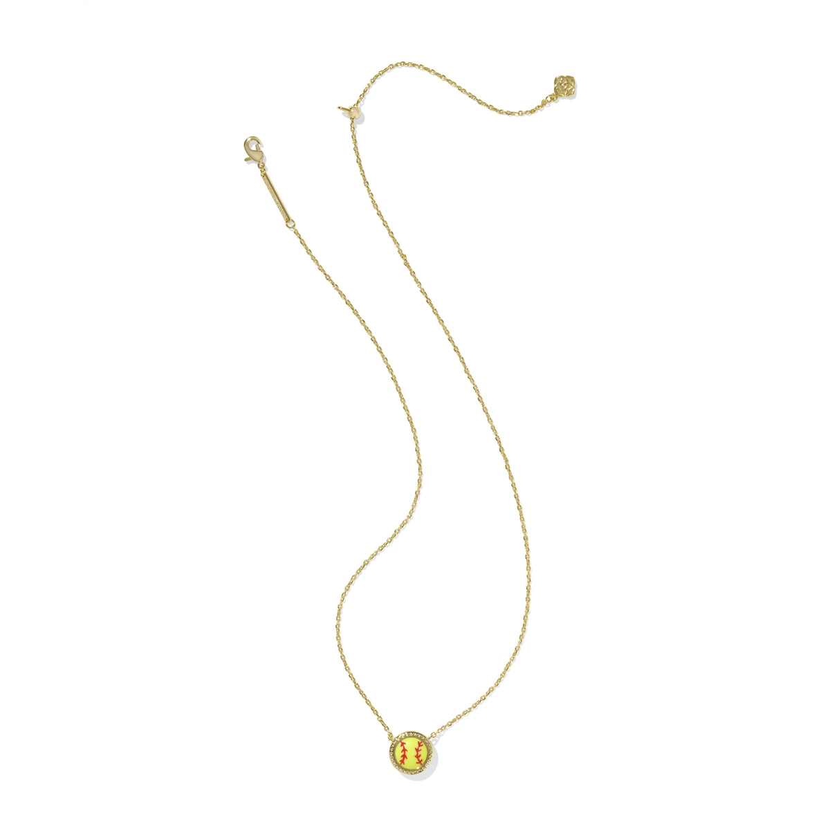 Kendra Scott Softball Short Pendant Necklace in Gold with Chartreuse Magnesite