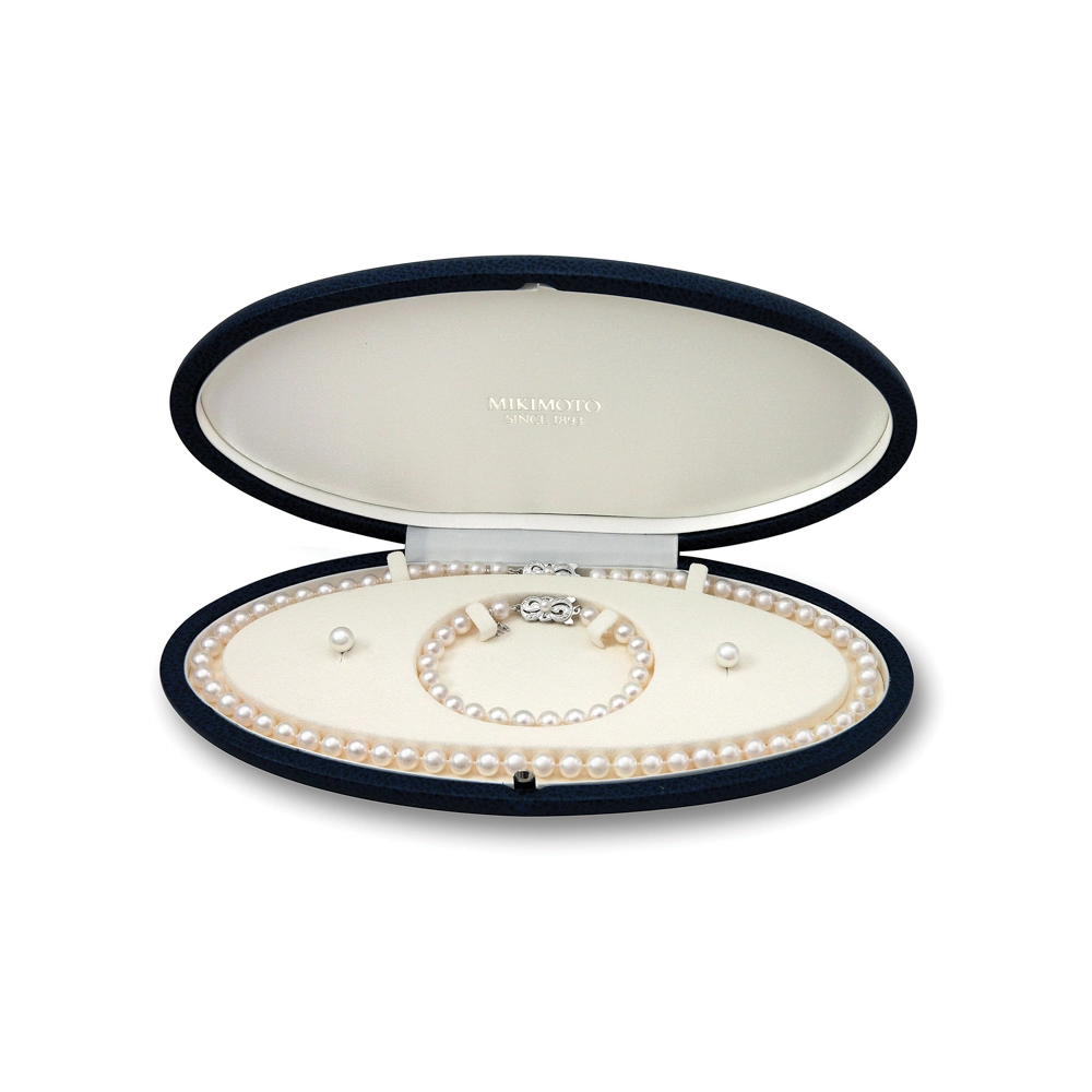 Mikimoto 18K White Gold Cultured Akoya Pearl 18 inch Necklace, 7.25 inch Bracelet and 7mm Stud Earring, 3 Piece Set