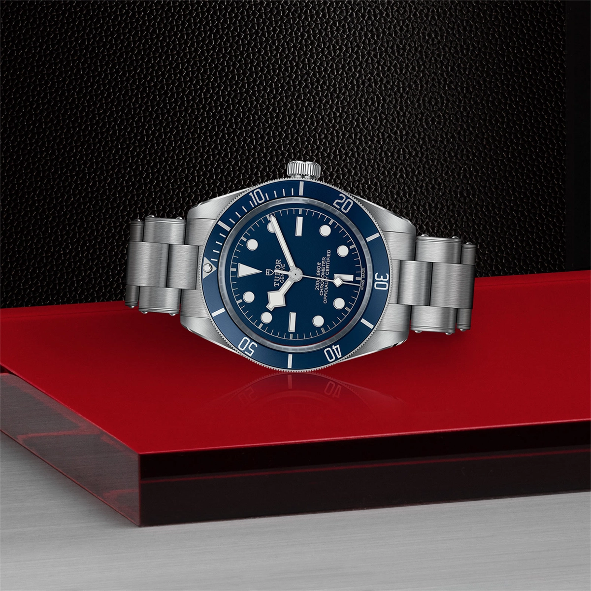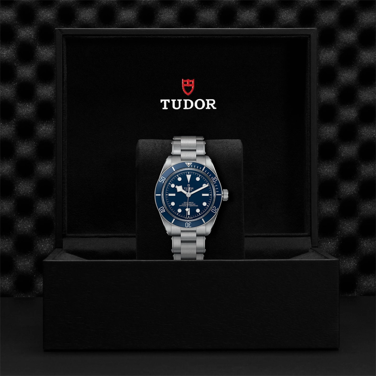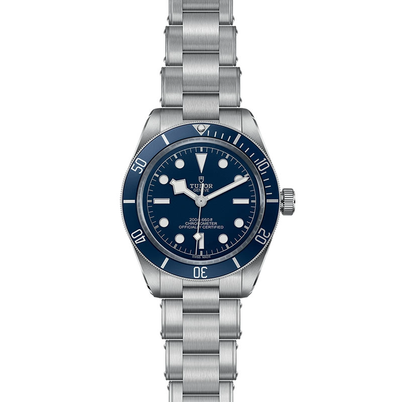 TUDOR watch. Black Bay 58. Steel case with polished and satin finish. Riveted steel bracelet with polished and satin finish, with folding clasp and safety catch. Domed sapphire crystal. 39mm case. Blue, domed dial. Unidirectional rotatable bezel in steel with 60-minute graduated disc in matt blue anodised aluminium and silver gilded markings and numerals. Manufacture Calibre MT5402 (COSC) Self-winding mechanical movement with bidirectional rotor system. Waterproof to 200M.