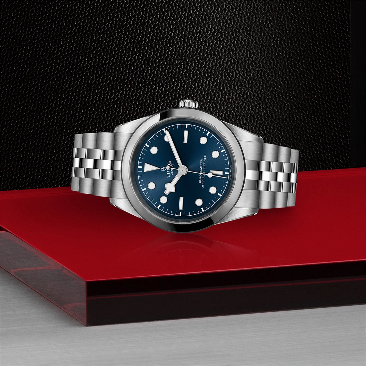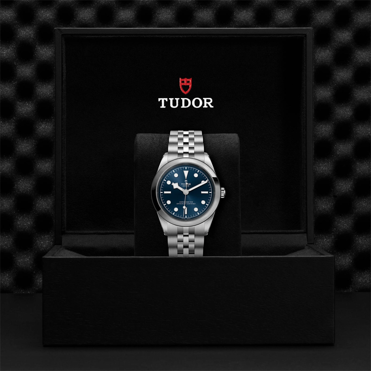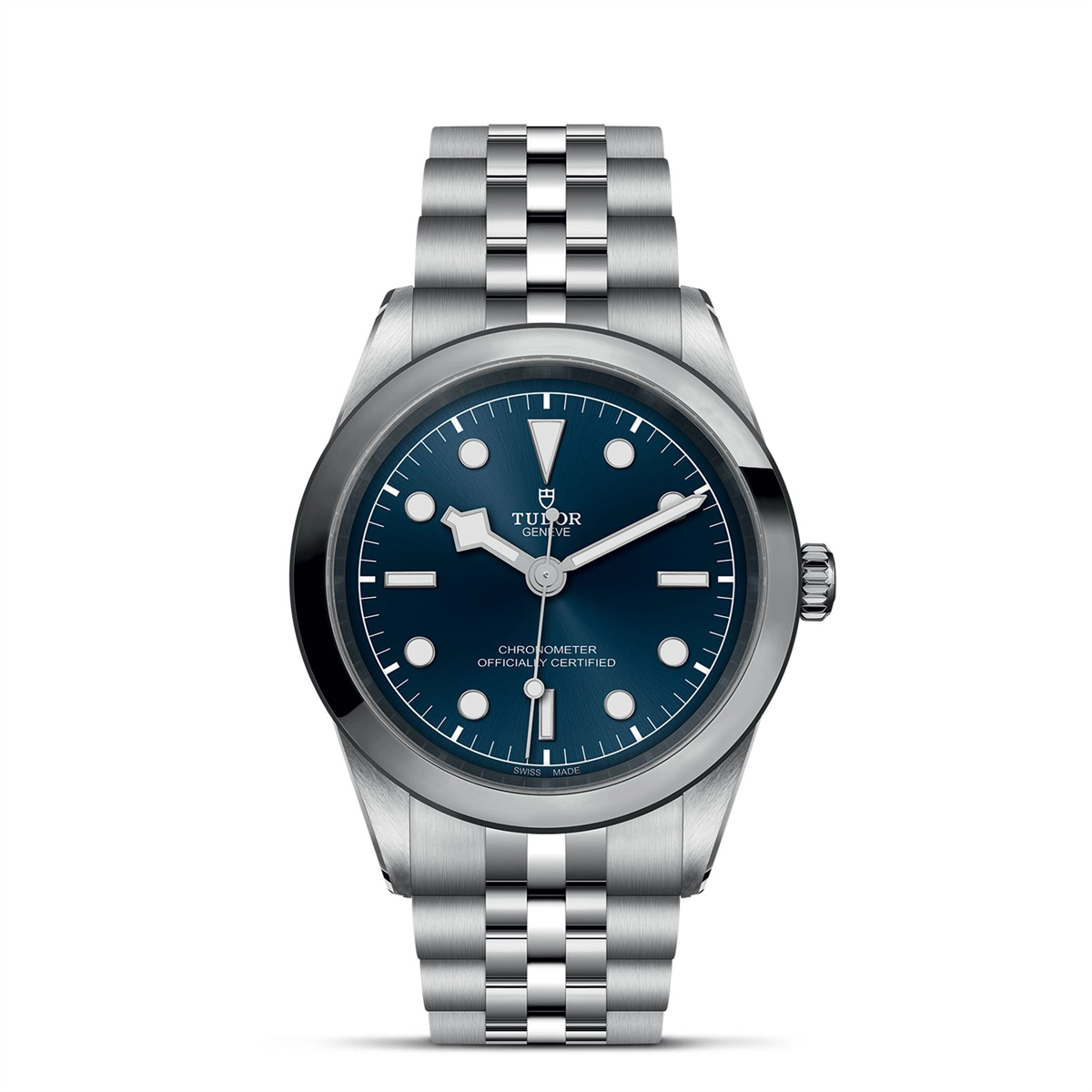 TUDOR watch. Black Bay One 41. Steel case with polished and satin finish. Stainless steel bracelet, polished and satin finish, with TUDOR “T-fit” folding clasp and safety catch. Flat sapphire crystal. 41mm case. Blue dial. Stainless steel bezel with polished and satin finish. Manufacture Calibre MT5601 (COSC) Self-winding mechanical movement with bidirectional rotor system. Screw-down crown with the TUDOR rose in relief. Waterproof to 100M.